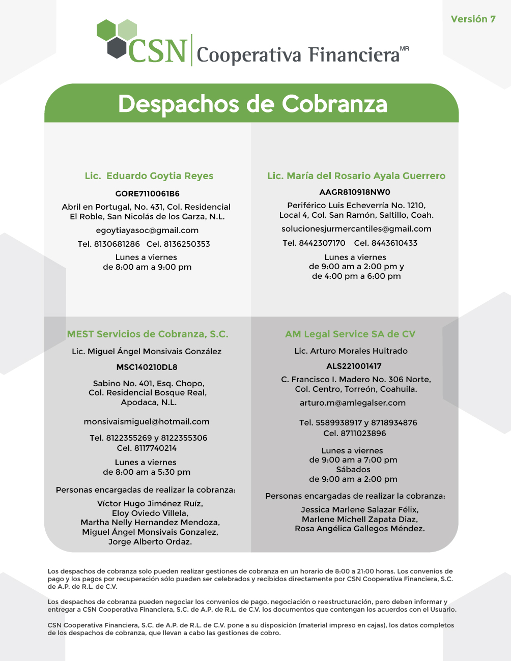 La información corresponde únicamente a CSN Cooperativa Financiera, para conocer la información de todo el sector a la que corresponda, se podrá accederal sitio http://www.buro.gob.mx.