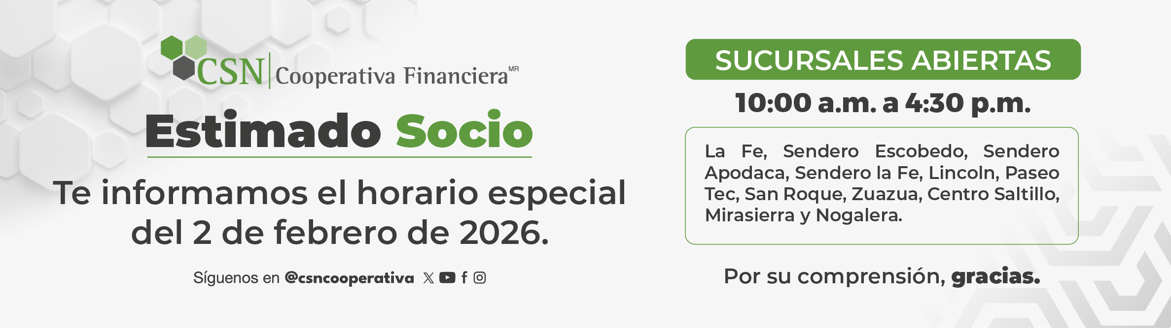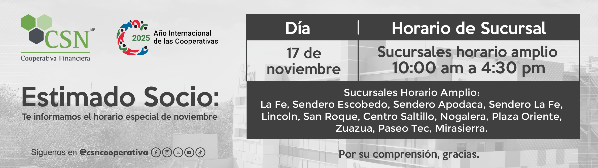 La información corresponde únicamente a CSN Cooperativa Financiera, para conocer la información de todo el sector a la que corresponda, se podrá accederal sitio http://www.buro.gob.mx.